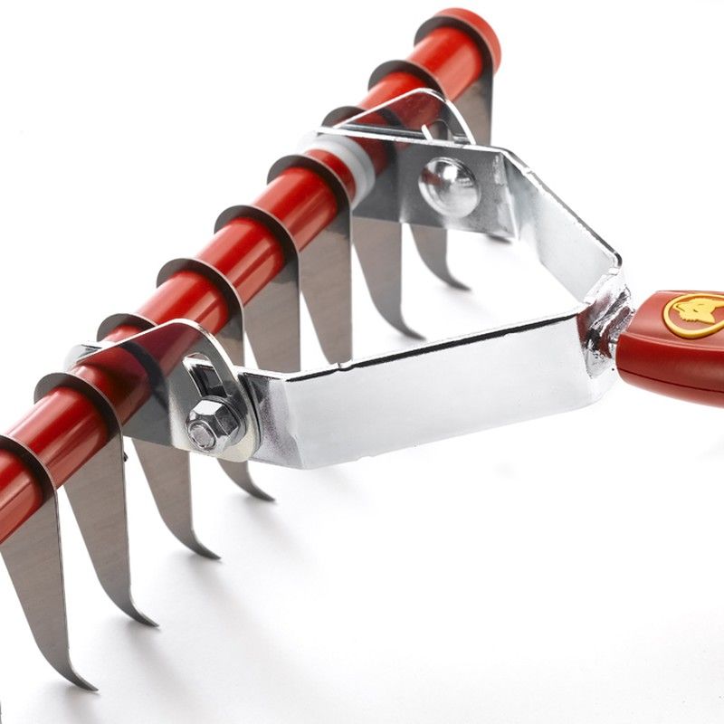 Escarificador de 10 cuchillas para airear pequeños céspedes. Con este escarificador conseguirá que su césped esté impecable y sólido de la forma más práctica. Además, tanto las herramientas como sus mangos son reemplazables, por lo tanto, podrá ahorrar espacio en su casa.