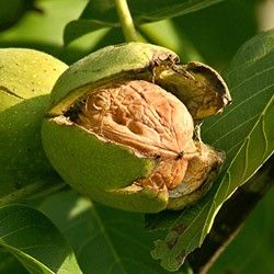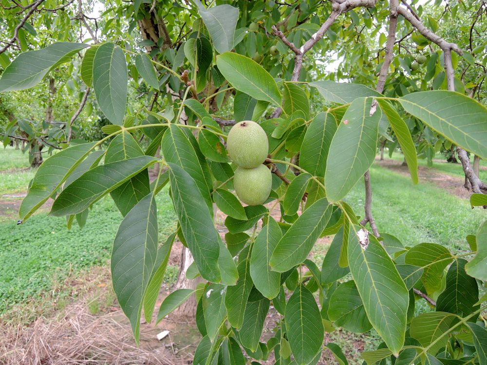 Árbol frutal de nogal común, también llamado nogal europeo o persa, apreciado por sus nueces comestibles de excelente sabor y su madera valiosa. Ideal para huertos amplios y jardines en climas templados.