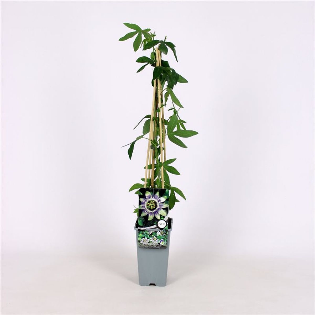 La Passiflora ‘Damsel’s Delight®’ es una enredadera perenne con flores espectaculares y muy decorativas. Sus flores presentan colores vibrantes y formas exóticas que atraen mariposas y colibríes, convirtiéndola en el centro de atención de cualquier jardín o pérgola.Vigorosa y de crecimiento rápido, se adapta a climas templados y requiere soporte para trepar, siendo perfecta para cubrir estructuras y aportar un toque tropical y ornamental.