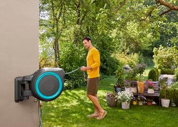 El portamanguera RollUp XL montado en la pared hace que regar un gran jardín se convierta en una tarea sencilla y fácil. Con solo fijando el almacenamiento de la manguera de forma permanente en la pared de su casa y conectando al grifo con una manguera de conexión podrá conseguir un riego de lo más cómodo. Gracias a la manguera de 35 metros de largo y la caja de manguera giratoria de 180 °, regar sus plantas dejará de ser una tarea pesada a ser un gran placer. El carrete de manguera sigue su dirección de movimiento evitando que la manguera se doble o se enrede. Una vez que haya extraído la manguera a la longitud deseada para el riego, los puntos de bloqueo particularmente cortos agarran y fijan automáticamente la manguera tan pronto como se detiene. Al tirar ligeramente del extremo de la manguera, el mecanismo de bloqueo se libera y un resorte de acero integrado enrolla la manguera de jardín extendida de forma totalmente automática, confiable y uniforme para usted. Gracias a la innovadora tecnología RollControl, la retracción es particularmente segura y controlada. La guía de manguera integrada asegura que la manguera se enrolle de manera ordenada y uniforme, sin enredarse. Las conexiones del grifo y la manguera de la caja de la manguera forman parte del sistema original GARDENA, por lo que puede conectar otros accesorios de riego GARDENA en cualquier momento. Siempre tendrá sus boquillas GARDENA a mano: se pueden colocar debajo del soporte de pared y guardar allí para ahorrar espacio. El material de alta calidad es resistente a los rayos UV y a las heladas por lo que se puede utilizar durante todo el año. Además, el almacenamiento de la manguera está asegurado con un dispositivo antirrobo. Todas las piezas de conexión y montaje necesarias se incluyen con el portamanguera enrollable de pared: un soporte de pared, una manguera de conexión, todas las piezas del sistema Original GARDENA necesarias y una boquilla con dos opciones de chorro de pulverización diferentes. GARDENA ofrece una garantía de cinco años para el almacenamiento de mangueras de alta calidad. El riego que siempre está listo para la acción, con la caja para manguera RollUp XL montada en la pared de GARDENA.