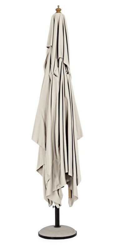Sombrilla modelo Eclipse de la marca Bizzotto. Su forma rectangular y su color visón encajarán fácilmente con la decoración y estilo de cualquier jardín o terraza.